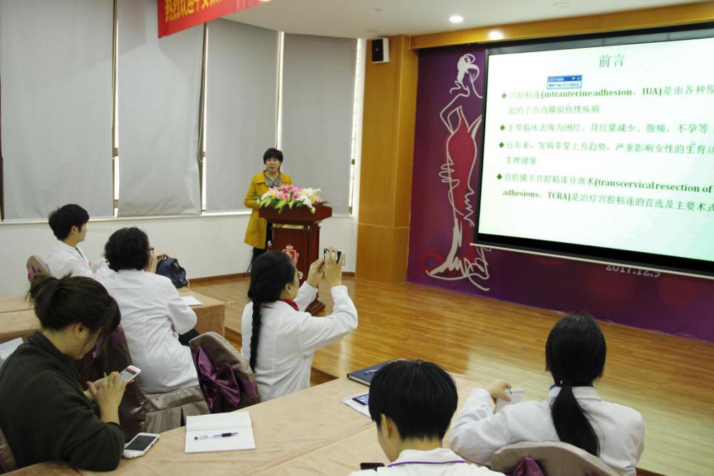 12月23日上午,我院组织医护人员在怡康八楼学术报告厅召开了关于宫腔粘连的学术交流会,首都医科大学附属医妇产赖爱鸾教授分享了《宫腔粘连的手术与术后处理》讲座。