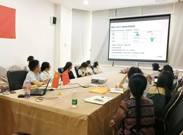▲我院组织开展罗氏电化学发光分析仪学习研究探讨会